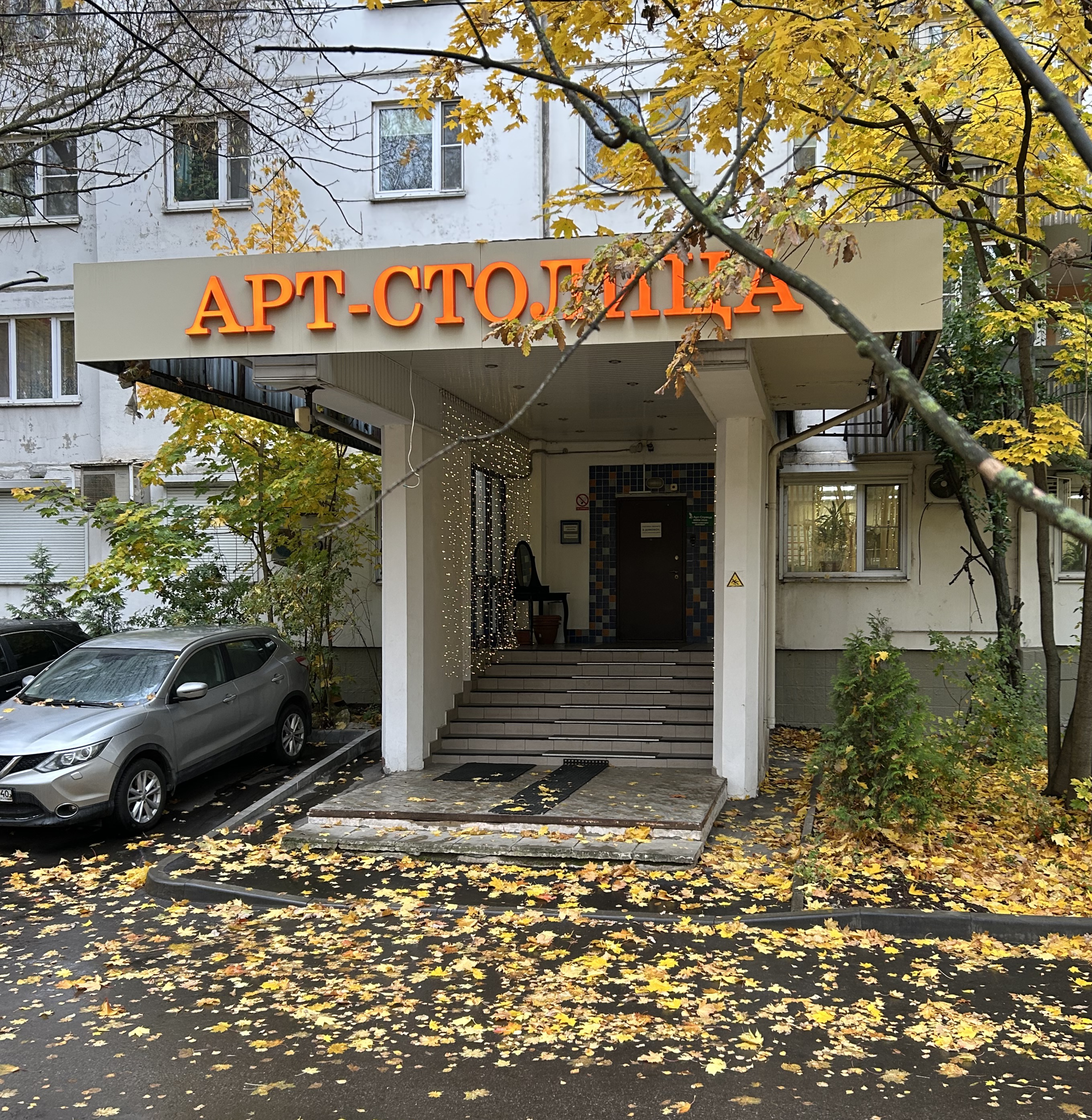Вам нужен третий по счету подъезд, с большой оранжевой вывеской АРТ-СТОЛИЦА
